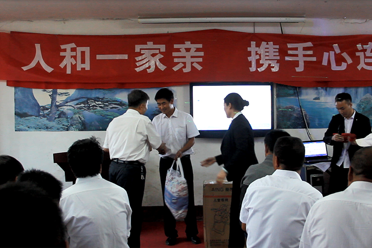 “園區(qū)開工以來,礦部員工起早貪黑、加班加點踏實工作,表現(xiàn)出了難能可貴的主人翁意識和默默的奉獻精神,更好地展現(xiàn)了企業(yè)文化理念。正是由于你們的努力,才使得公司在發(fā)展的道路上越走越好。你們是公司的脊梁,是大家的表率。在郎寶龍董事長講話的引導下,活動正式開始??偛康耐聜儙砹烁枨?、快板、三句半等節(jié)目,臺上的同事們表演的興高采烈,臺下的的同事們看的津津有味。在節(jié)目的最后,楊青山經(jīng)理,鄧偉部長為每一位礦部的員工送上了“愛心六件套”和“暖心棉被”,礦部的同事們樂在臉上暖在心里,此時此刻的感言:簡單、純樸、有力量。主持人宣布晚宴正式開始的時候,活動進入了另一種氛圍,大家開心地品嘗著家人自已烹飪的美食,用美酒交流著感情,一片祥和、一團和氣。